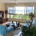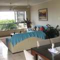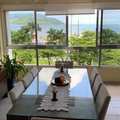 A sala é espaçosa, com 2 ambientes integrados e uma belíssima vista permanente para o mar.