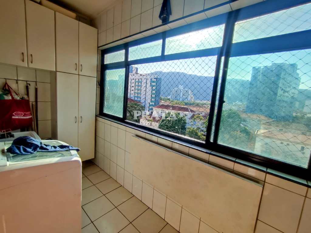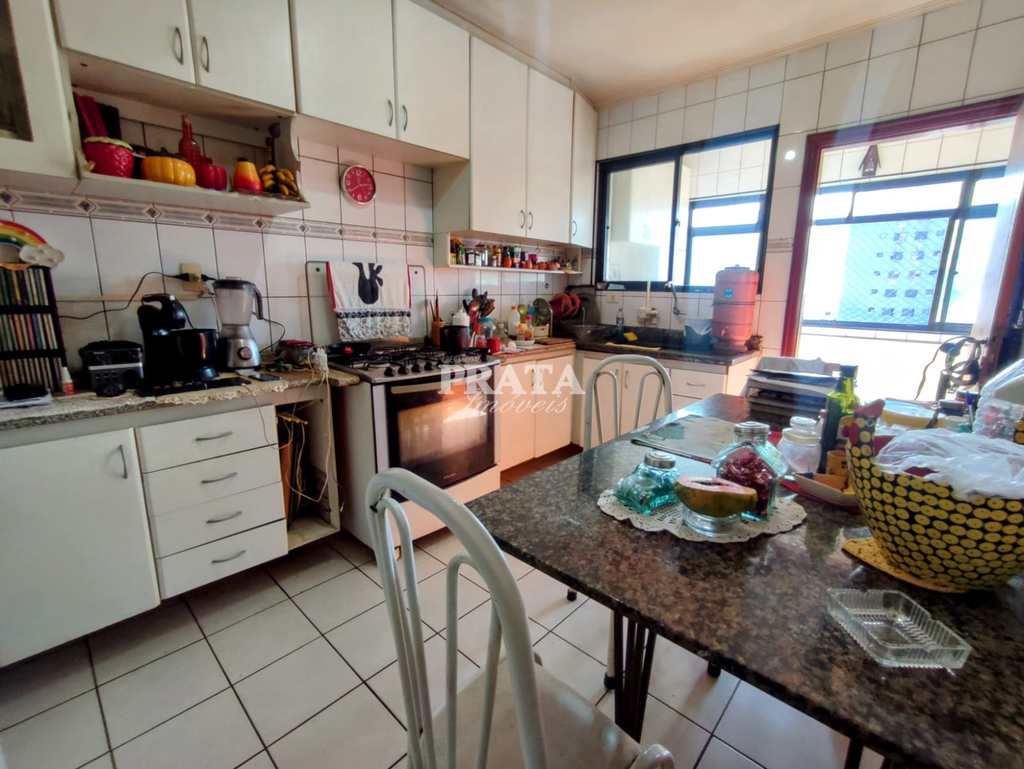 Conta com 2 dormitórios, sendo 1 suíte, banheiro social com box em vidro, sala ampla para 2 ambientes, cozinha com armários, área de serviço e dependência de empregada.