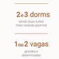 2 OU 3 DORMITÓRIOS 1 OU 2 SUÍTES SALA VARANDA GOURMET COM CHURRASQUEIRA À GÁS BANHEIRO SOCIAL LAVABO COZINHA ÁREA DE SERVIÇO 1 VAGA DE GARAGEM DEMARCADA