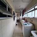 Cozinha funcional, área de serviço e dependência de empregada revertida para o corredor de distribuição interna, otimizando o espaço do imóvel entrada social e de serviço.